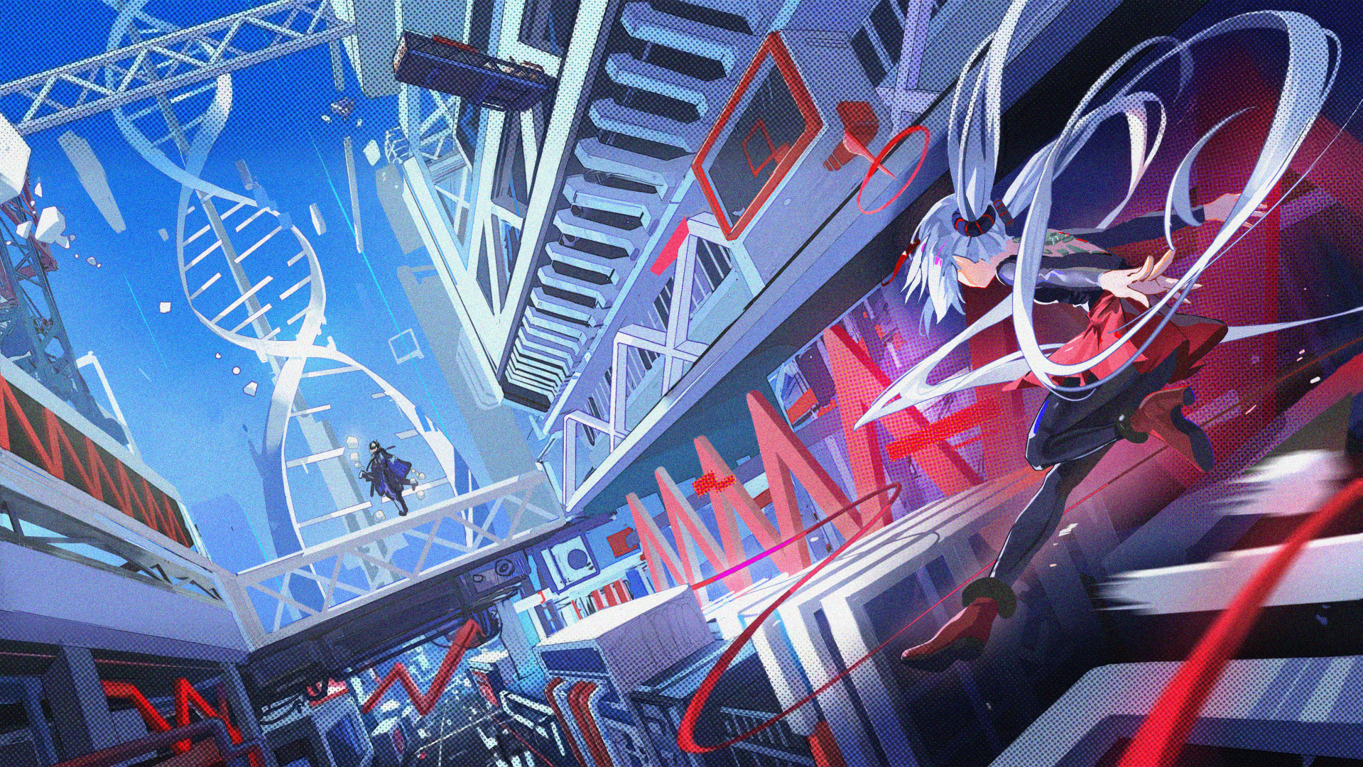 巨大的、违背常理的建筑残骸悬浮在半空。冰冷的雨从未停歇,落在地上便碎成了细小的0 和1。
